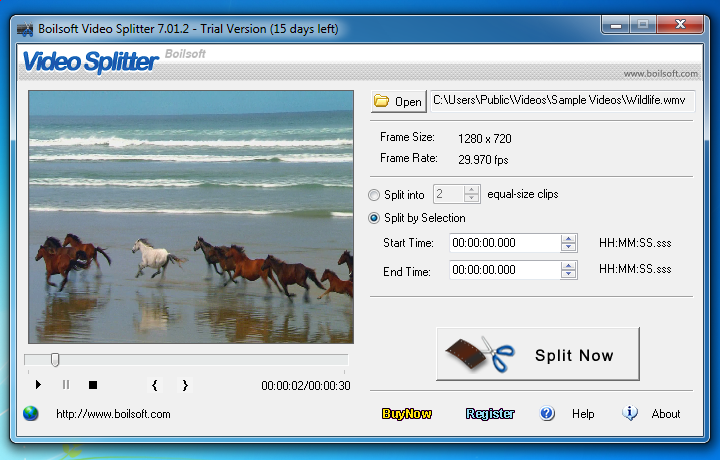 Boilsoft Video Splitter is an application that you can use to split media files into several parts.