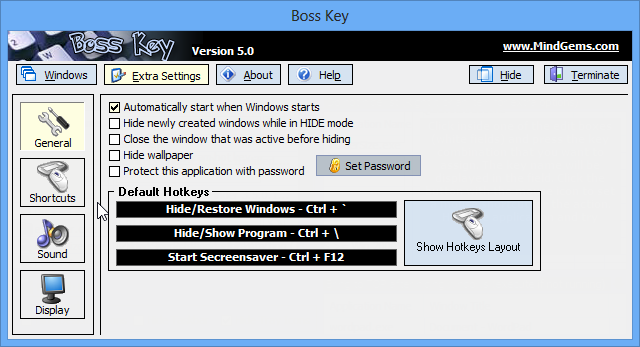 You can hide currently open windows with a single keystroke, ensuring that your privacy is protected while you are using your computer.