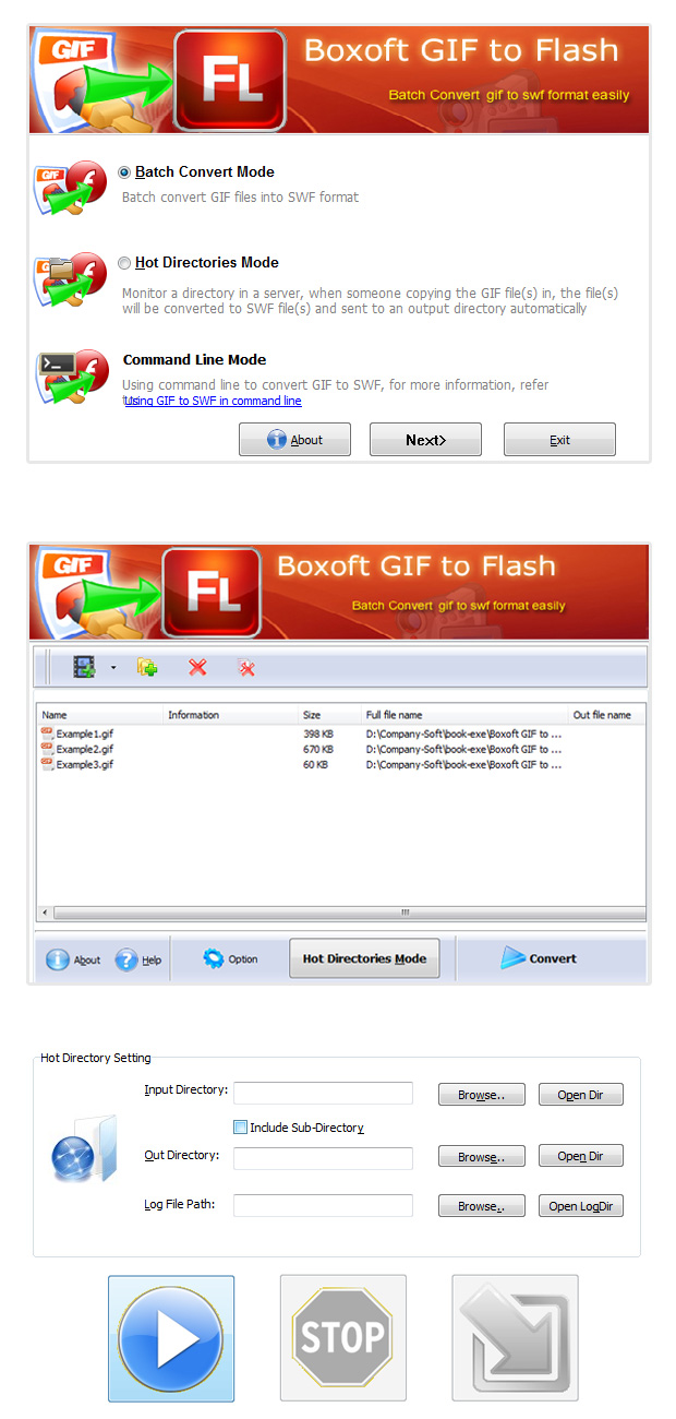 Boxoft GIF to Flash Converter is a powerful conversion tool that mass converts GIF to Flash SWF format. SWF files are thus ready for use on the web or for streaming over the Internet. The video conversion settings are fully in your hands - choosing quality, size, frame rate and other parameters. Option to create a list of GIF files for export or import. The graphical interface of the programs is very clear and simple. Give it a try!