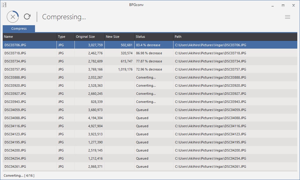 BPGconv is a BPG (Best Portable Graphics) converter for this file format. BPG file is a new image format designed by Fabrice Bellard . BPGconv allows you to interconvert BGP format with any file format such as JPEG, PNG, GIF, TIFF and BMP.
