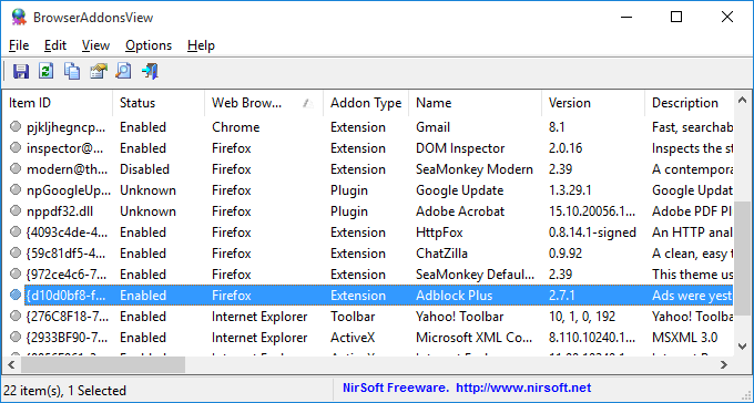 BrowserAddonsView is a simple tool that shows details of all web browser add-ons/plugins installed on your system.