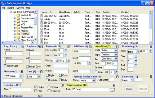 Bulk Rename Utility is a utility that allows you to quickly and easily rename a large number of files and folders according to certain criteria. You can also rename or change file numbering, letters, numbers or entire text strings in file names. Complete settings can be stored in profiles, so if you rename frequently, you can save the settings and quickly recall them next time.
