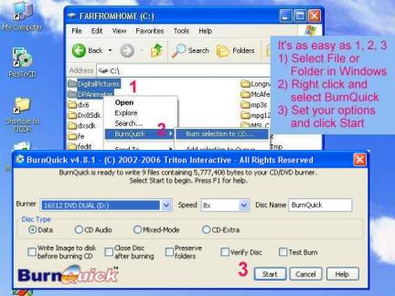 With BurnQuick Data/Audio CD/DVD Burner you don't have to wait for the burning program to load, BurnQuick Data/Audio CD/DVD Burner is directly part of the menu in Windows Explorer.