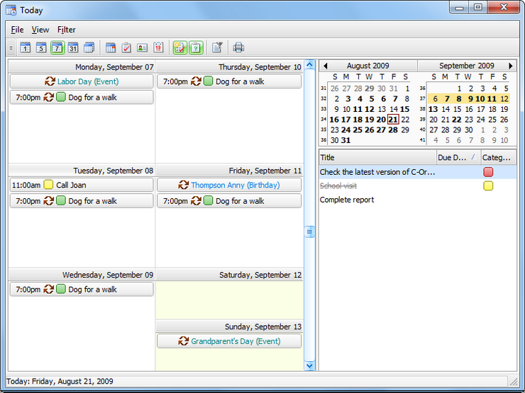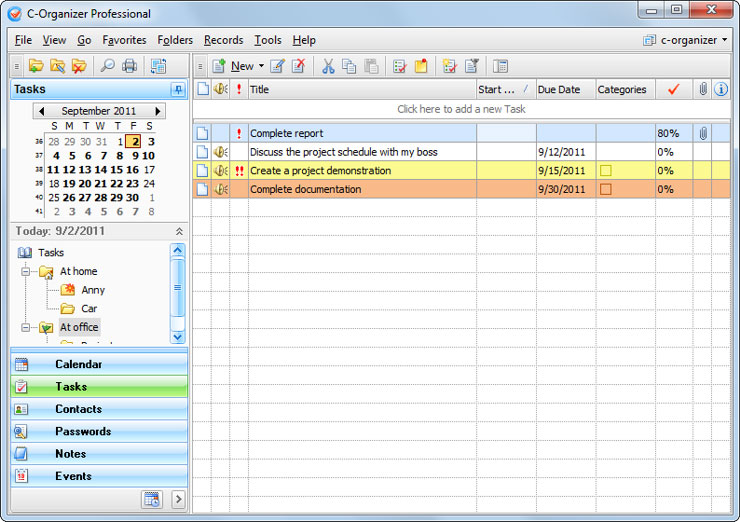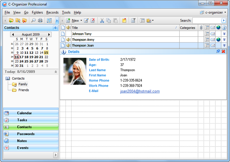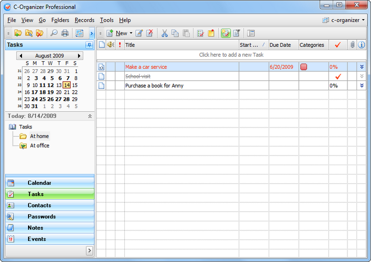 C-Organizer is a powerful and great personal information manager to help you organize your personal and professional life. Two product editions are available: Pro and Lite.