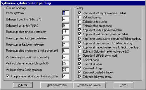 The program allows for a comfortable extraction of parts from the Capella-partitur. The program is designed for those users who often extract parts from cappella-partituras and do not want to set their attributes (score name, line formatting, systems, line breaks, etc.) in individual extracted parts over and over again.