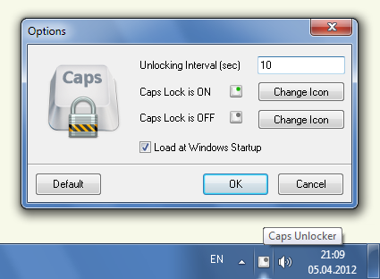 CapsUnlocker runs as an application in the system tray on the taskbar.