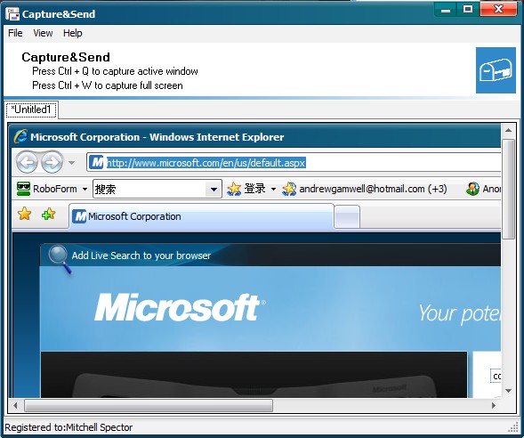 Capture&Send is a simple utility that allows you to capture screenshots (screen shots) and insert them into an email attachment, just by clicking. It works with all email clients with MAPI support: