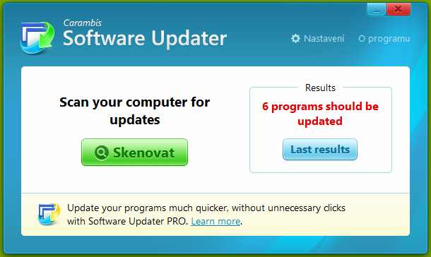 Carambis Software Updater is a universal tool for updating programs. Once started, it will find the latest updates available for all programs running on your computer. A unique scanning algorithm quickly analyzes data about any outdated software on your computer and instantly displays a list of programs that can be updated. This program works only as a scanner. Pay attention to the installation process as there are third party products involved.