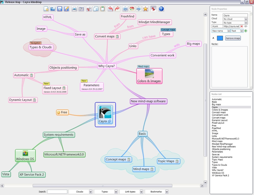 Cayra is software that helps people visualise their ideas. It can be useful for a number of purposes, such as brainstorming, problem solving, presenting, and learning.