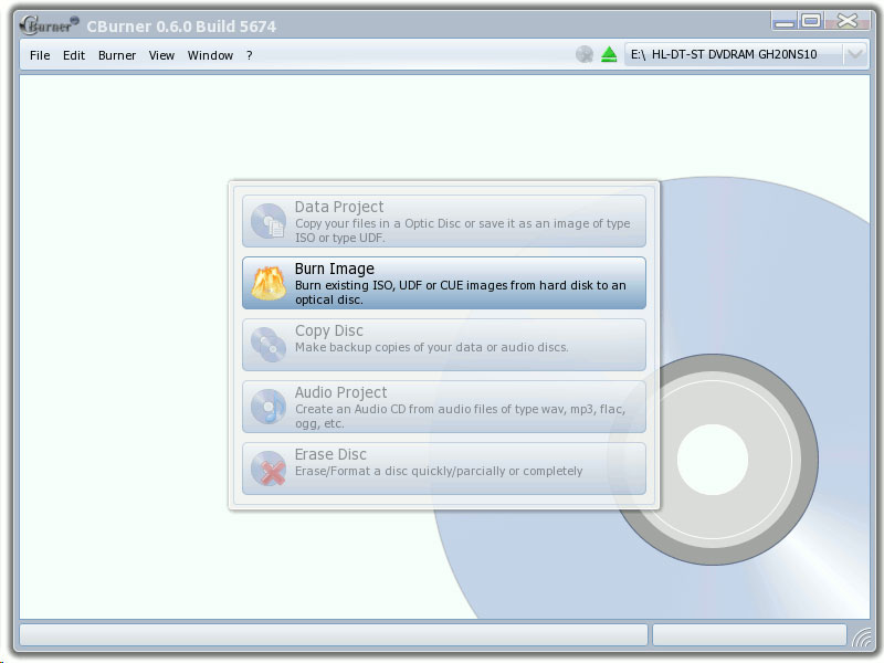 It's a small application that allows you to burn your data very quickly and has a very clear user interface for easy operation. CBurner is also adapted for bulk processing. It can work with ISO files and UDFs.