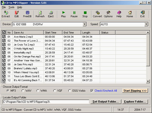 CD to MP3 Ripper supports almost all currently known formats. Of course, you can adjust the compression rate when converting to mp3, wma and ogg.