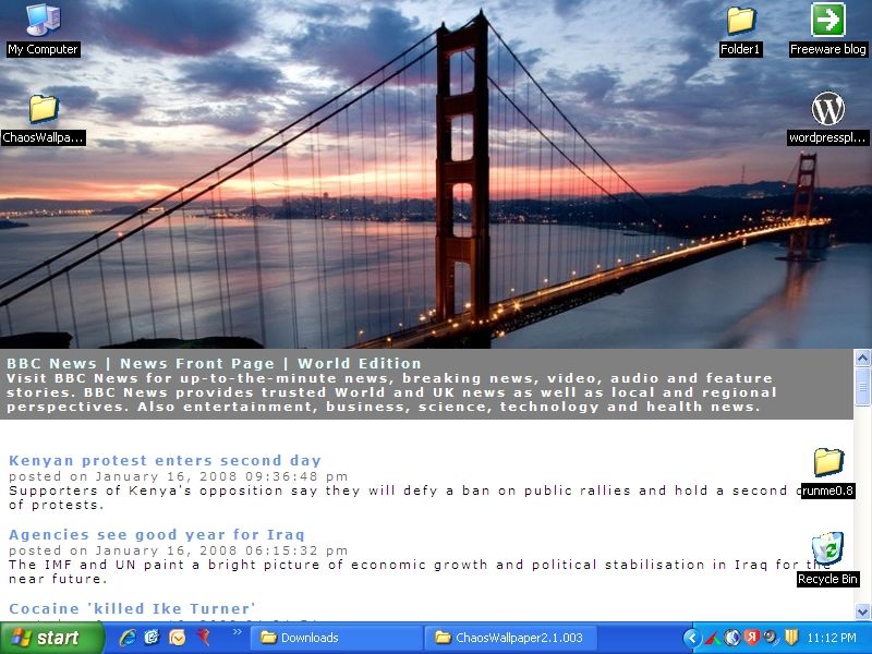Chaos Wallpaper is an excellent free RSS/Atom news aggregator and wallpaper changer for your desktop that is capable of displaying RSS 0.9x, 1.0, 2.0 and Atom 0.x feeds. This RSS/Atom reader changes your desktop wallpaper while displaying links to RSS and Atom news.