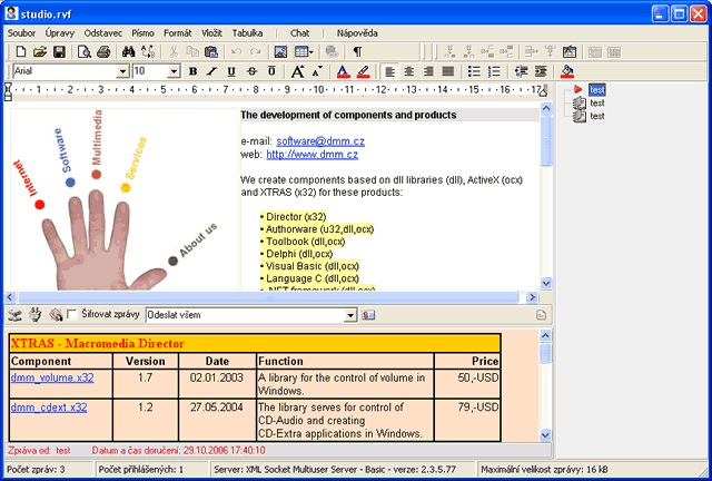Chat-eClever is a suitable solution for companies that, for example, want to build a chat on their own intranet and send more complex messages than just simple texts. Chat-eClever allows users to exchange documents in real time. There is no limit to the number of participants and company meetings, discussions and conferences can be held. Along with public discussions of a wide number of participants, private messages can be sent, which is very useful in many situations. An example might be a teacher who needs to check in with students who are not currently present in school or provide consultation on a problem. For example, support for users who need to solve a problem, etc.