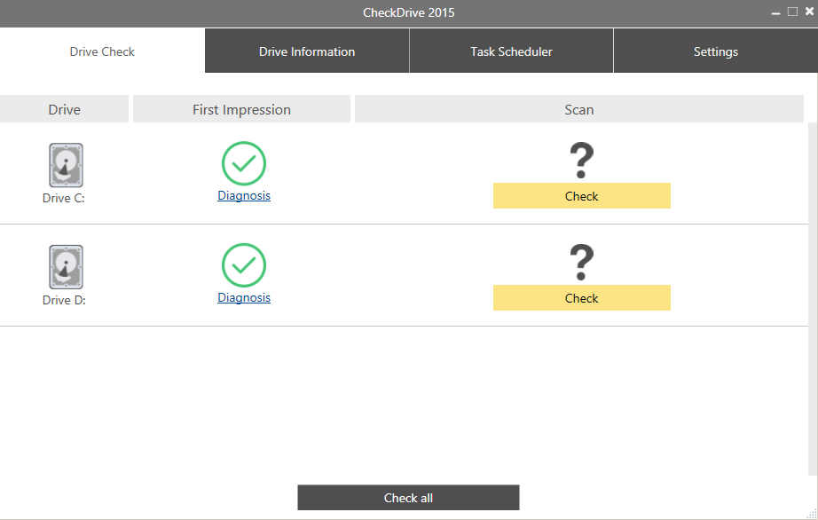 CheckDrive is a tool for checking the health and fixing errors of traditional hard drives, flash memory and SSDs. It provides a complete overview of S.M.A.R.T. analysis data and all essential information about the drives. It compensates for the English that some people don't like with a really simple interface. And it also allows real-time monitoring of disk health.