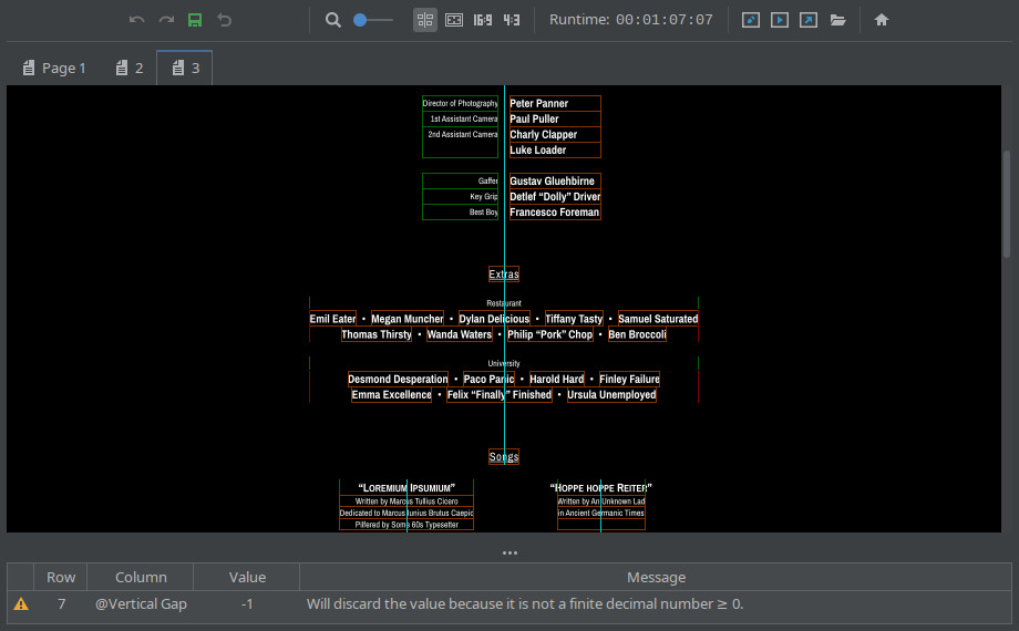 Cinecred can be used to import subtitles from raw data formats such as Excel, OpenOffice/LibreOffice or CSV. You can also edit the content of subtitles and see their final form with live visualization. Cinecred also offers a number of existing layouts and designs for subtitle layouts.