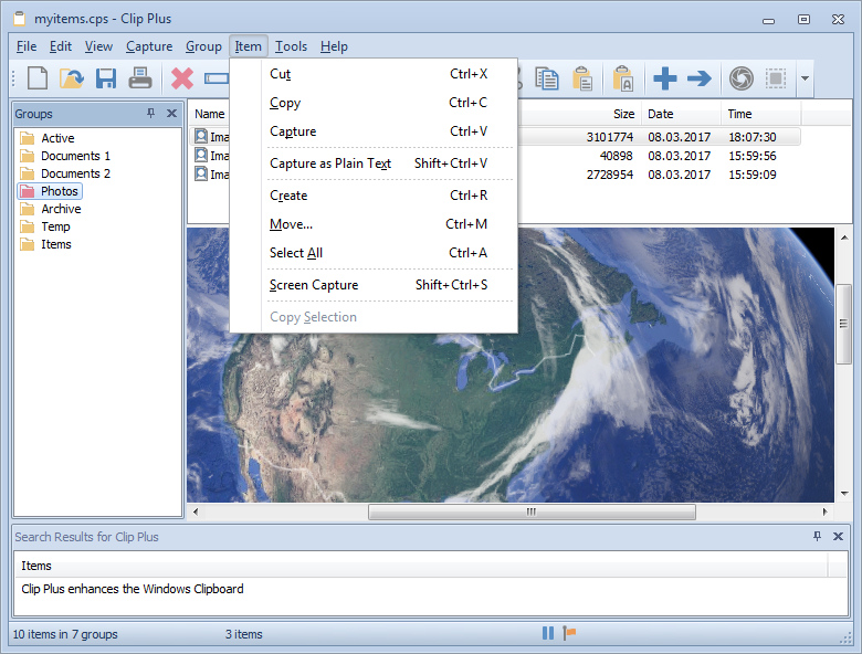 A tray icon provides quick access to the program and indicates whether you're in capture or pause mode. Then click mto open the main screen where your items are stored. You can create and save groups of items in the program, and save individual text and graphic items.