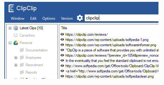 ClipClip is a free Windows clipboard management software for advanced copy and paste. ClipClip allows you to copy multiple texts, images or files to the clipboard. The most recently copied items can then be browsed, searched, or transferred to the Saved Clips folder so you can assign a name to them and organize them into folders to use later.