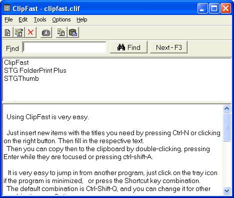 Clipfast is a handy tool to help you organize your notes and create shortcuts for frequently used text. It is useful for inserting data into forms and various applications.
