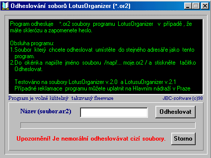 Clo - the program unprotects *.or2 files of Lotus Organizer 2.0 (2.1) if you forget your password. The program is freely distributable.