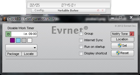 ClockED is an application that, as the name suggests, displays the current clock on your screen instead of the existing clock in the system tray. The default location is at the top center of the screen, which is certainly more convenient for the user. This app is also capable of notifying you of upcoming events. A skinnable interface is also included.