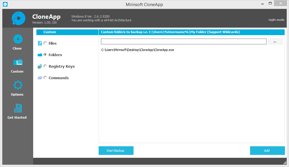 CloneApp is an application that makes it easy to back up application settings, registry entries, and various files and folders as needed.