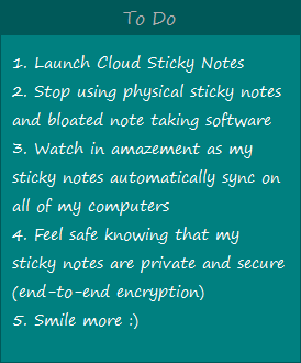 Cloud Sticky Notes is a little helper for taking notes. It has easy to use. It syncs automatically, so your notes are always available. You can change fonts, font color, transparency, set notification time, etc.