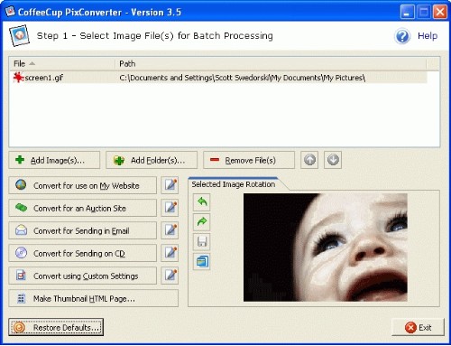 With CoffeeCup PixConverter you can easily convert your digital images to be used for e.g. websites, emails or anything else. The program supports bulk conversion and the ability to embed a watermark with text or graphics. The program has a clear intuitive user interface.