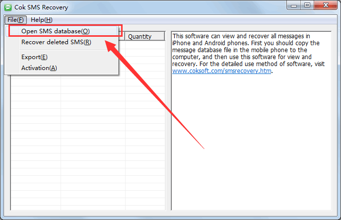Cok SMS Recovery is a tool that recovers deleted sms messages from Android or iOS smartphones. In case of Android phone, you need to load the database file (mmssms.db) with SMS messages, which you can find in the data folder. For iPhones, you need to retrieve the sms.db file, which is contained in the backup data file. This file can be accessed through Apple's tools.