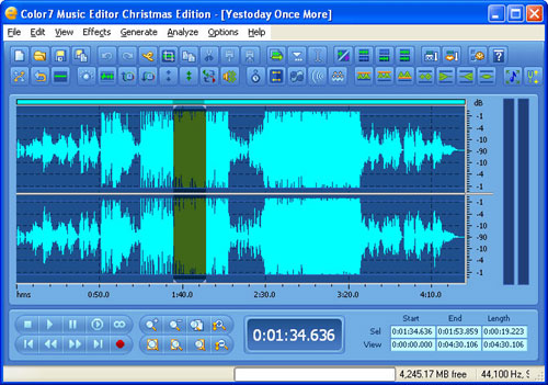 Color7 Music Editor is an audio file editing and recording tool that supports various audio data operations. You can also use this tool to record your own music, voice and then edit and mix them or add various effects such as Reverb, Chorus and Echo. You can also convert audio files to different music formats.