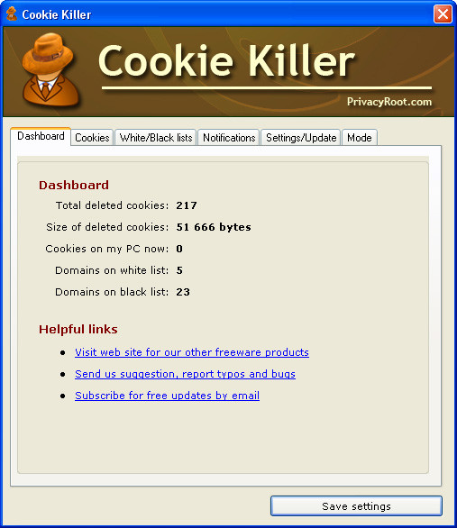 Cookie Killer is a free program that helps you protect your privacy and control cookies.