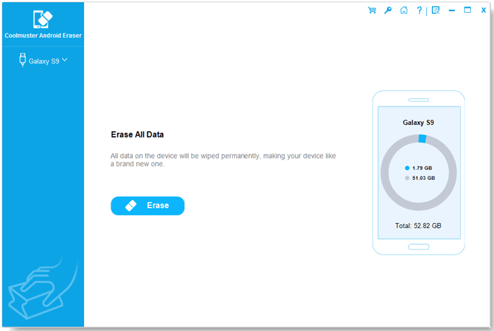 Coolmuster Android Eraser is a protection software that is able to erase all personal data from your Android device without any possibility of recovery. It will return your Android device to a completely "clean state" so you can confidently sell or donate it.