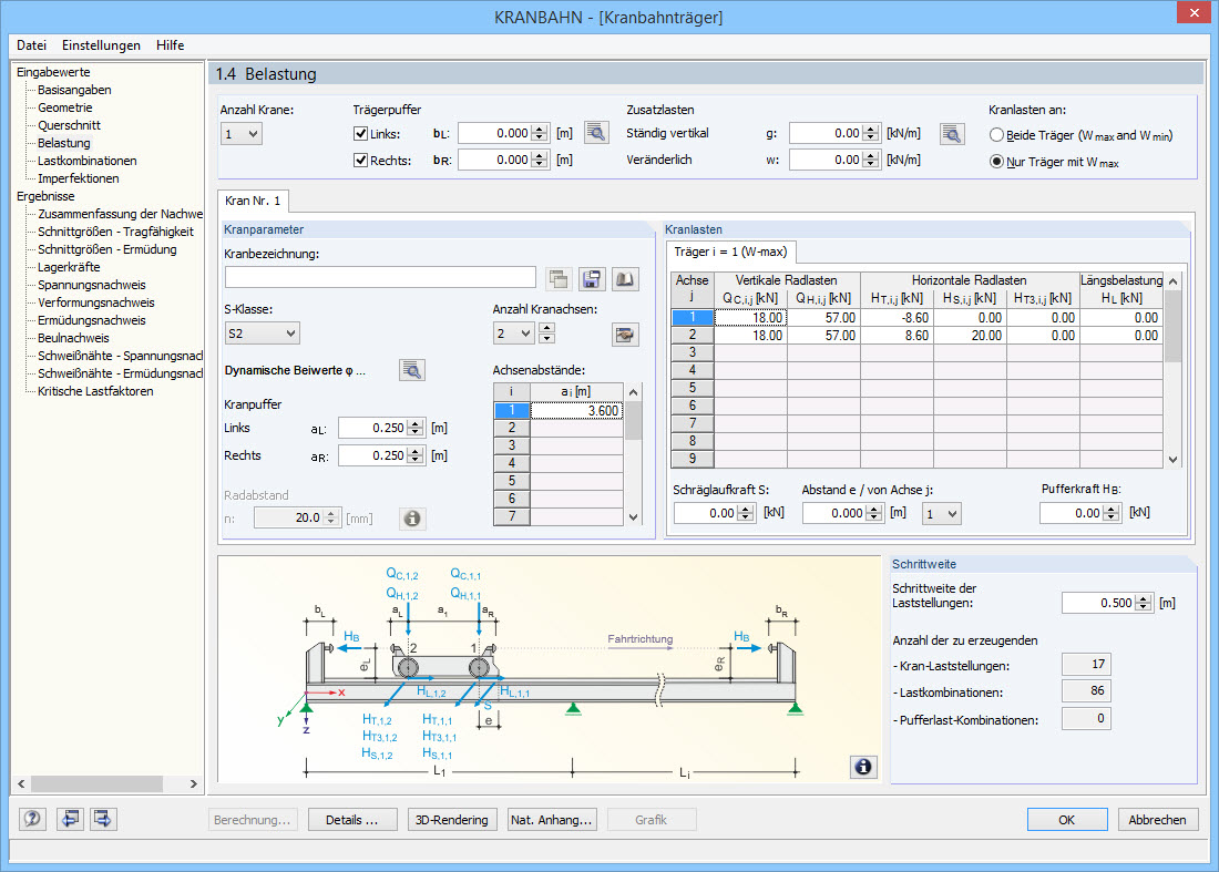 When designing according to EN 1993-6, it is possible to select the type of crane (overhead or overhead crane).