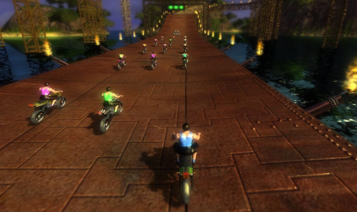 Crazy Serpentine is a catchy moto game with 3D graphics. As a racer on a motorcycle you will play against 15 opponents. You will fight for the title with powerful competitors. But you should be very attentive, because they are very cunning and will put obstacles all over the road! You will be surprised by the special effects in this exciting game. Can you smell the burning tyres? Water and fire, crazy speed, lights, winding roads, dynamic music and adrenaline are waiting for you.