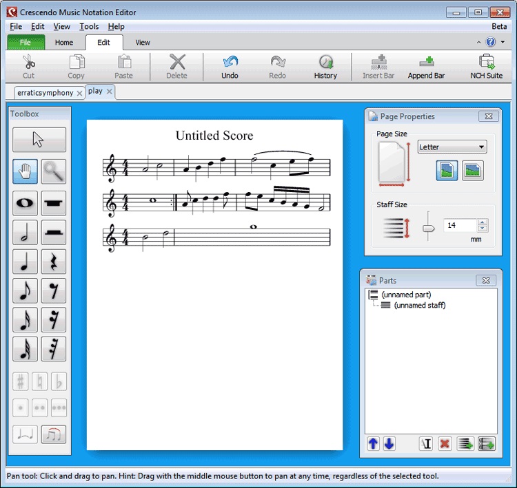 Crescendo Music Notation Editor is a simple software for composing your own music. The software is designed for music students, teachers and composers. It provides an ideal software solution for writing, saving and printing music composition. It offers a wide selection of music notation symbols and free form creation.