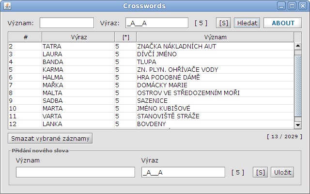 Using a simple search, it is possible to search the list of words by term or meaning. A term is a word that is entered in the crossword and the meaning is of course the meaning (description) of the term.