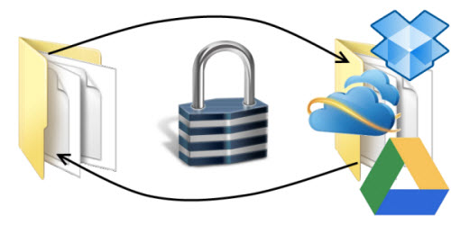 CryptSync is a small utility that synchronizes two folders, but the encryption of the content happens in one folder. This means that one of the two folders has all the files in unencrypted form and the other folder has all the files encrypted.