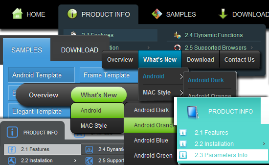 CSS3 Menu allows you to create nice looking navigation menus for web pages. You can use the integrated templates in the program to create them. It supports adding multi-column menus + submenus. Supports all modern browsers (except IE6). Visual UI design allows you to create menus without the need for complicated operations.