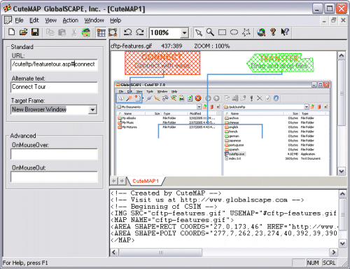 CuteMAP is a tool for creating click maps. We load the image we want to edit into the program, use the cursor to mark the area that should respond to the click, add the address where the link should be directed. The result is saved to disk or the HTML is copied and pasted into the web page itself.