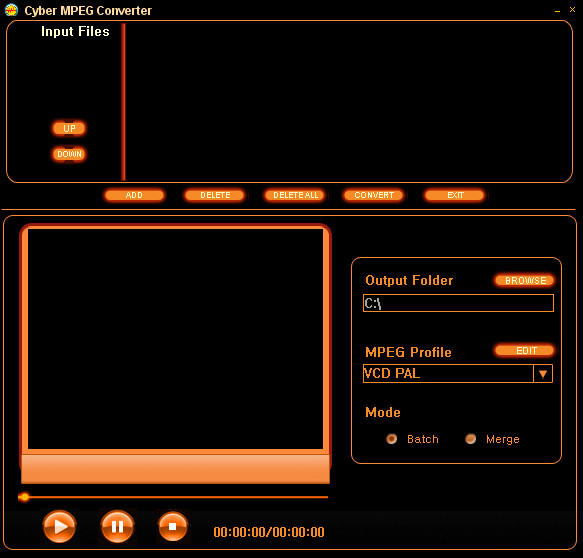 Cyber MPEG Converter supports a wide range of input and output formats, including RM, RMVB, VOB, AVI, WMV, ASF, MPEG, MP4, DAT, FLV, MOV and 3GP. Just add your video to the program, select the output format and click the Convert button. The conversion will be done quickly and without unnecessary complications.