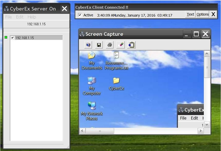 CyberEx is a small, portable application that gives you the ability to manage your computers remotely without any setup or configuration. It contains a list of all connected computers, you can easily send messages, view files, monitor running processes, capture screens, or even reboot or shut down a remote machine.