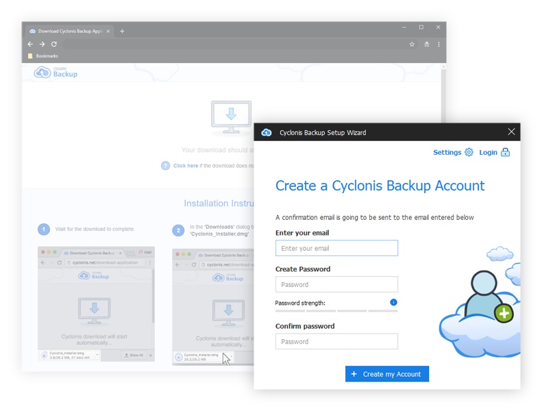 Backup of your photos, documents and other valuable data is important, but it can also be time-consuming and difficult. Cyclonis Backup was designed to make this process quick and easy for users of all experience levels. Cyclonis Backup's easy-to-use backup wizard will help you identify and select files from your computer to back up. With just a few clicks, files can be backed up to the cloud, secured with AES-256 encryption.