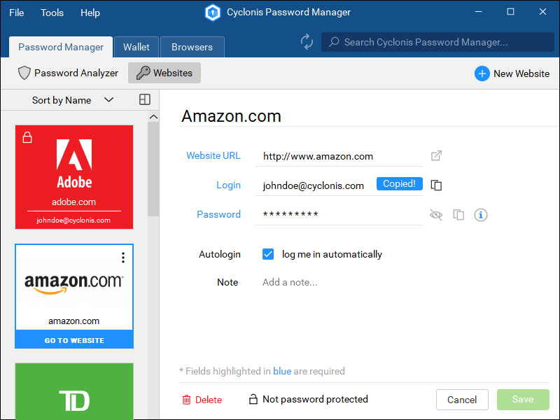 Stop worrying about forgetting your passwords. Cyclonis Password Manager stores and organizes your passwords and other data to make your online life easier.