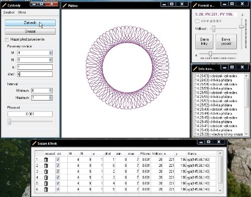 The program is used for automatic generation of curves (cycloids) using mathematical equations whose parameters are entered using the form environment (see documentation).