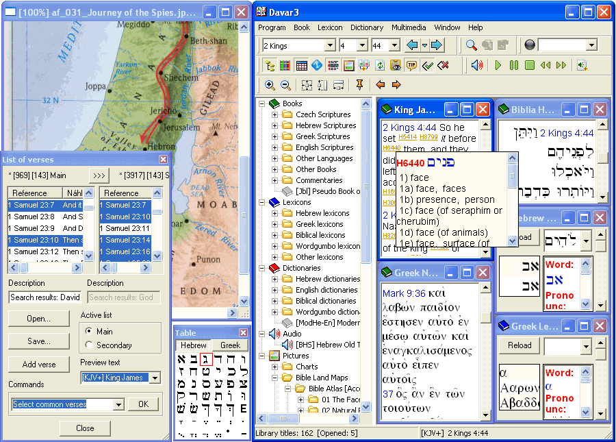 DAVAR3 (also abbreviated as D3) is an application designed by a Czech author for Bible study, which offers a wide range of options and features, including support for multimedia documents or dictionaries.