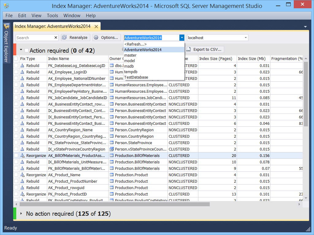 The tool allows you to quickly build index fragments and detect database maintenance requests. You can easily reorganize SQL indexes in visual mode or generate an SQL script to build them. This maintenance will speed up and optimize access to database requests.