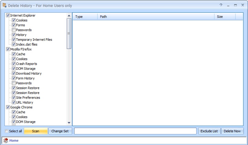 Delete History is a free tool that can help you delete the history and other data of various applications. It currently provides a set of more than 30 applications. It includes Internet Explorer, Firefox, Chrome, Office, Windows Explorer and many more. This set of applications is completely customizable and if you are a beginner programmer, it provides an exciting and very simple programming language" (PDHPL) with which you can create your own history erasing set.