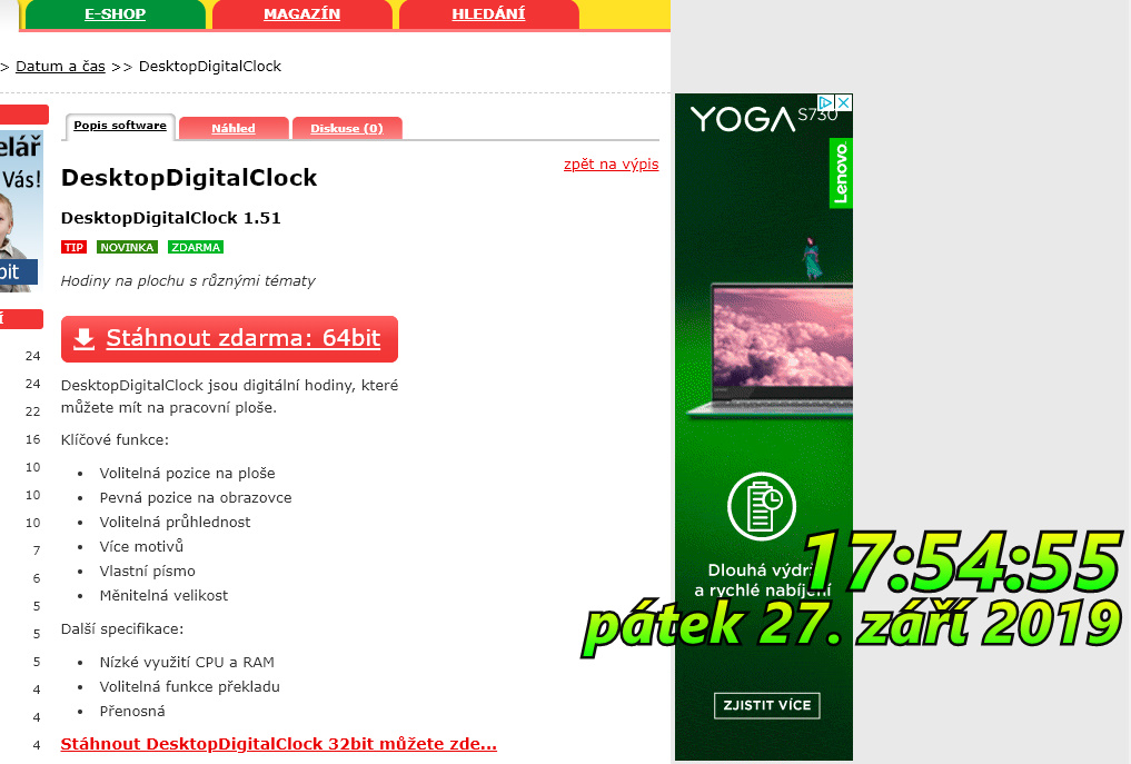 DesktopDigitalClock is a digital clock that you can display on your desktop.
