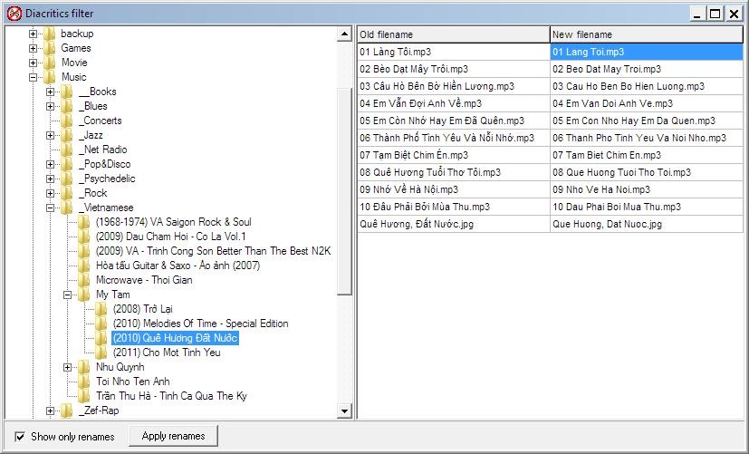 DiaFilter is an application that renames files and folders with the accents in their names removed.