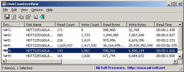 DiskCountersView displays the system counters of each disk in your system, including the total number of read/write operations and the total number of read/write bytes. It also displays general drive information such as the drive name, partition number, partition location, and so on.