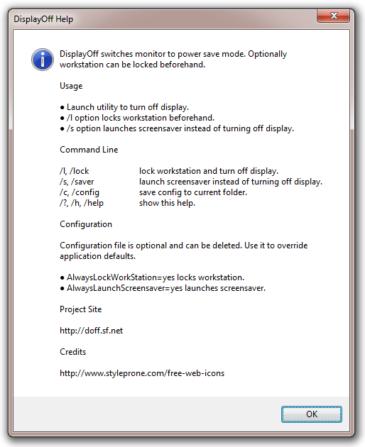 Display Power Off Utility is a portable tool for temporarily turning off your laptop screen or monitor. The utility can also optionally lock the computer. In addition to turning off the screen, it is also only able to activate the screensaver. The downloaded archive includes a version for both 32-bit and 64-bit systems.
